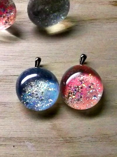蓄光顔料とグリッターとガラスを使って、ちょっとしたアクセサリーも作っています。