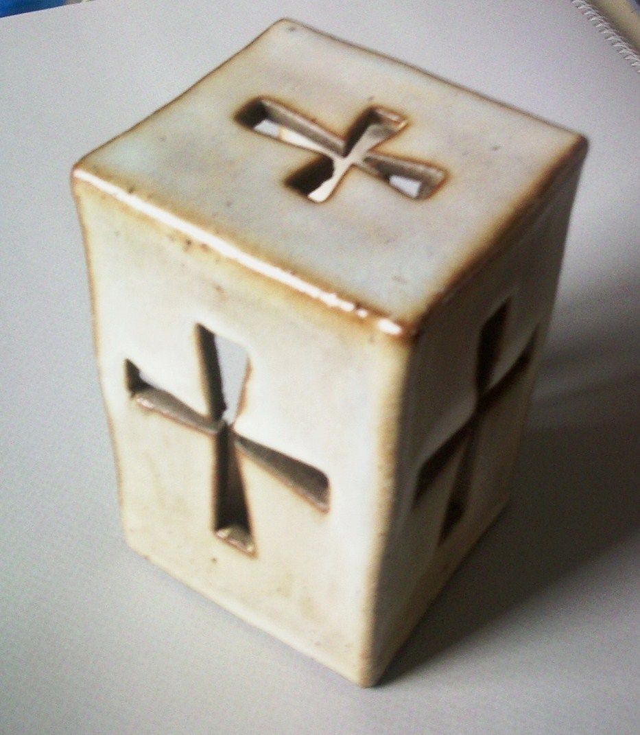 クロスの切り抜きが横三方と天にあり、裏側からティーキャンドルを入れられるようになっています。