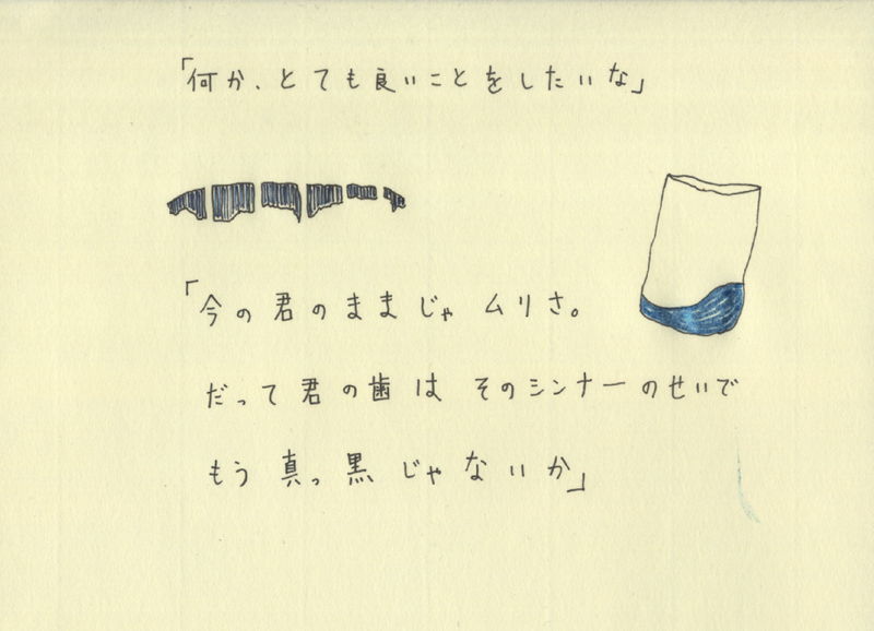 だって君の歯はそのシンナーのせいで、もう真っ黒じゃないか。」