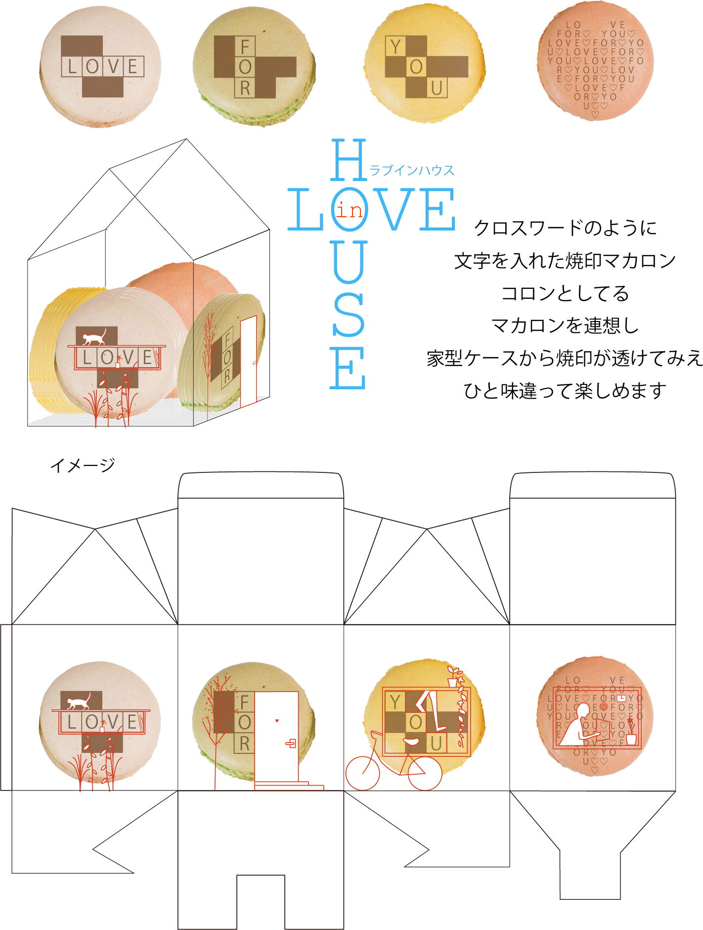 マカロンのコロンとしたした連想からケースも立体的な家型にし、