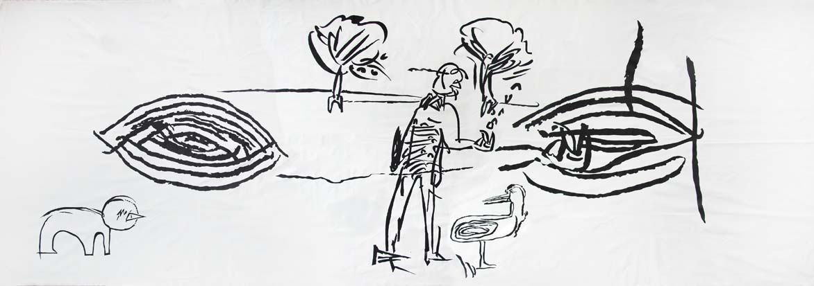 *布に墨汁で描いている。  横3m80cm × 天地126cm