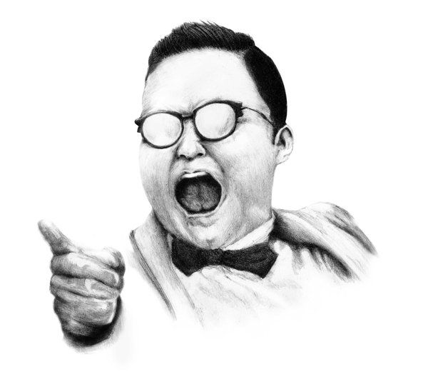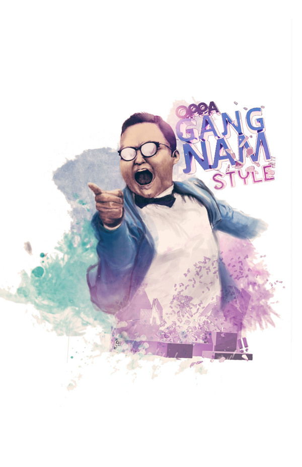 My very own tribute to the Gangnam Style song by the korean artist PSY. The image was made using different mixed media; analog 2b pencil ilustration, digital watercolour painting, and 3d modeling in 3ds max for the stage and the lettering. Hope you like it. Cheers from Chile!!