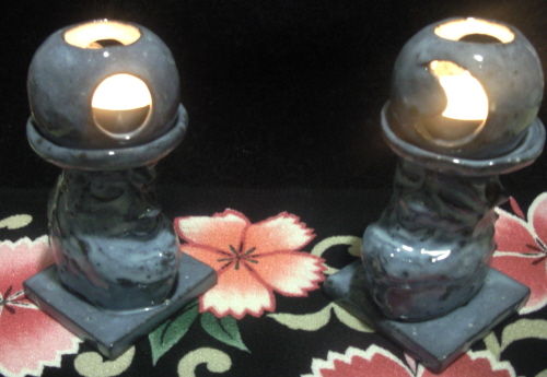 灯籠部分は、月と日輪の形に切り取られ、ティーキャンドルの光を周囲に投げかけます。