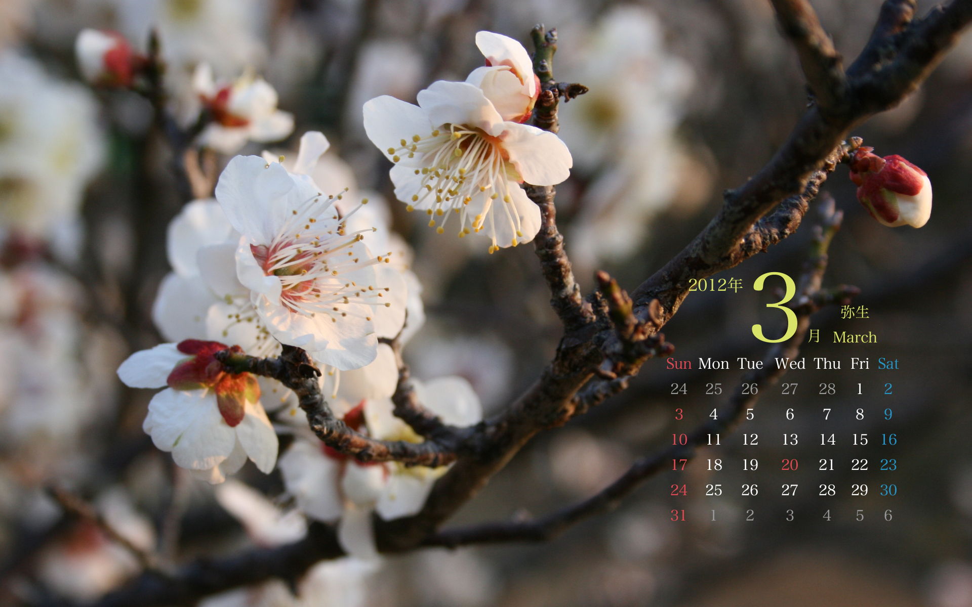 2013年3月PC壁紙カレンダー1(1920×1200)です。