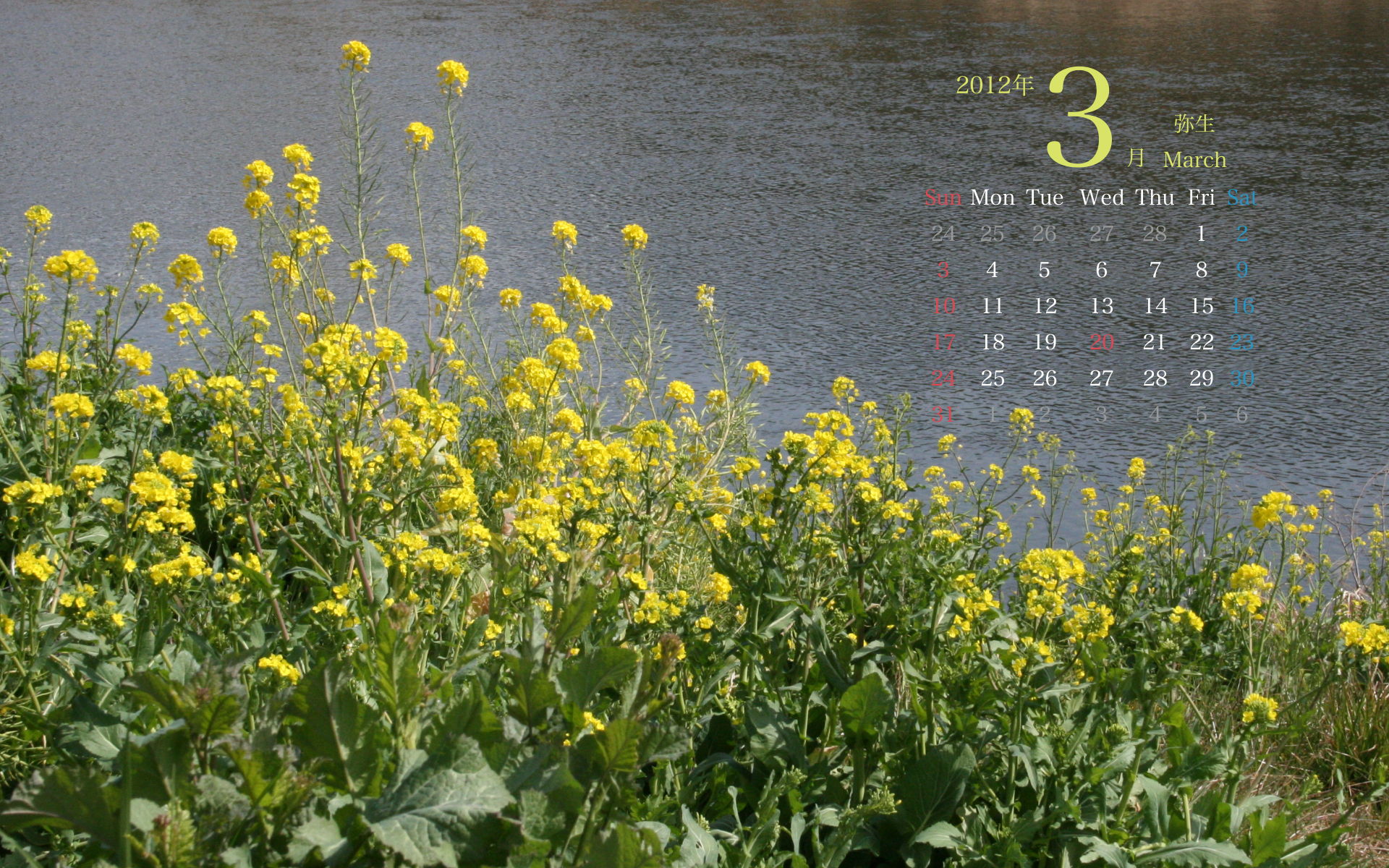 2013年3月PC壁紙カレンダー2(1920×1200)です。
