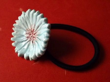 今回は黒い髪ゴムを通してみました。女性の髪に花が咲いていると、華やかになりますよね。
