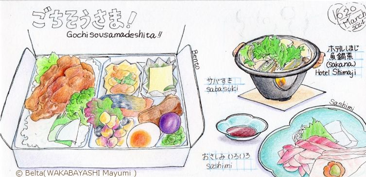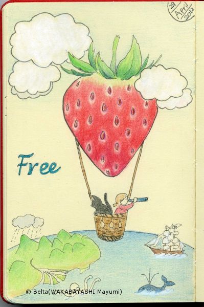 モレスキンスケッチブックにペンと色鉛筆で描いています。