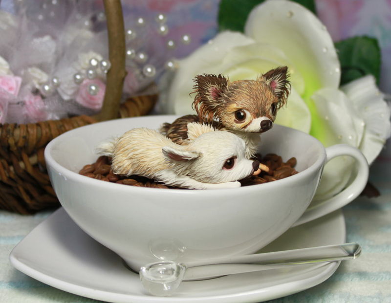 粘土で制作した2匹のチワワちゃんです。
