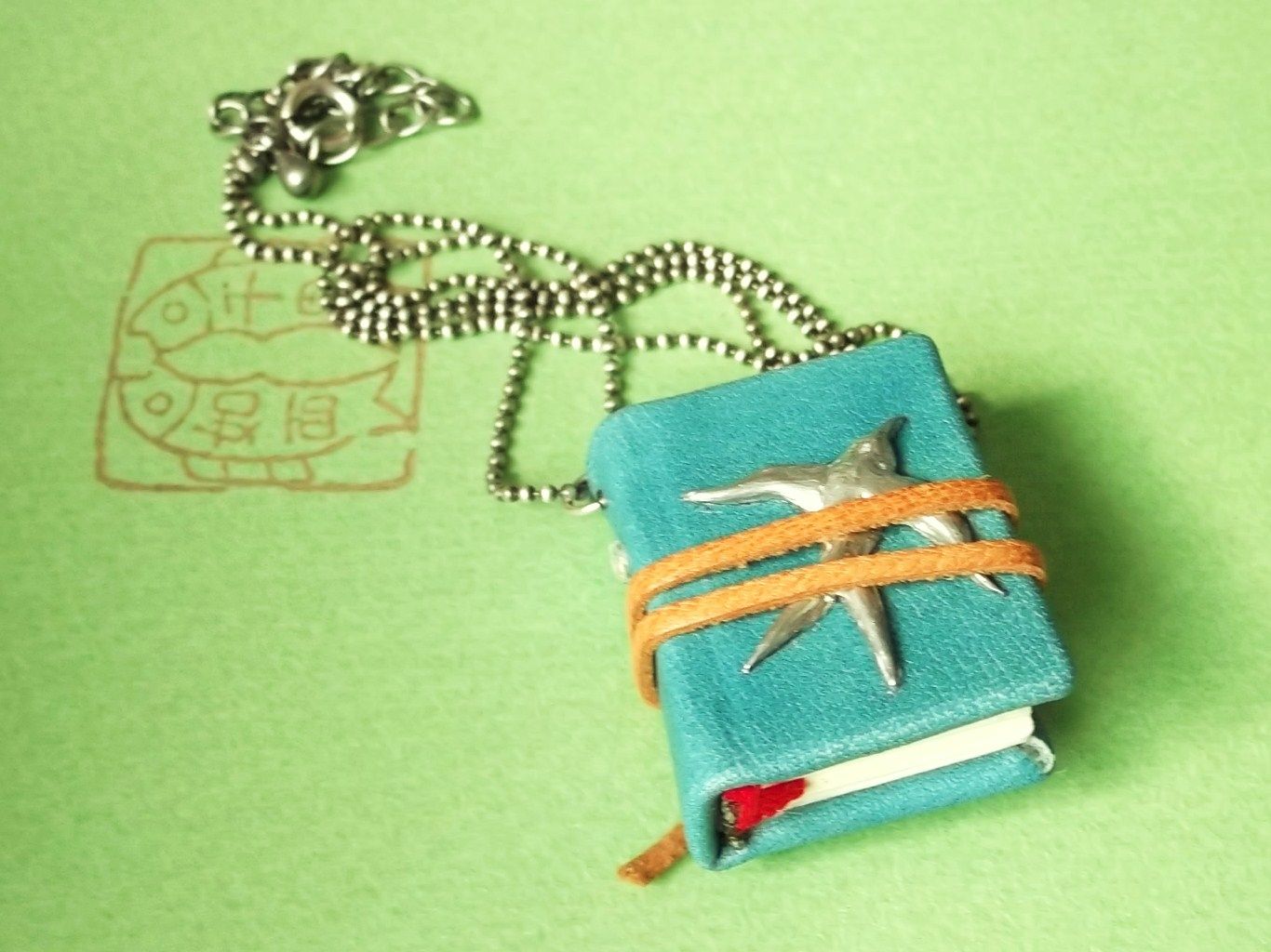 表紙と裏表紙には、ピューターで作ったレリーフを貼り、チェーンを通してネックレスに仕立てました。