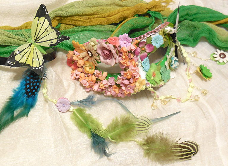 100均(もしくはそれ以下)の材料のみで、仮面とカチューシャを作ってみました。テーマは春です〜。