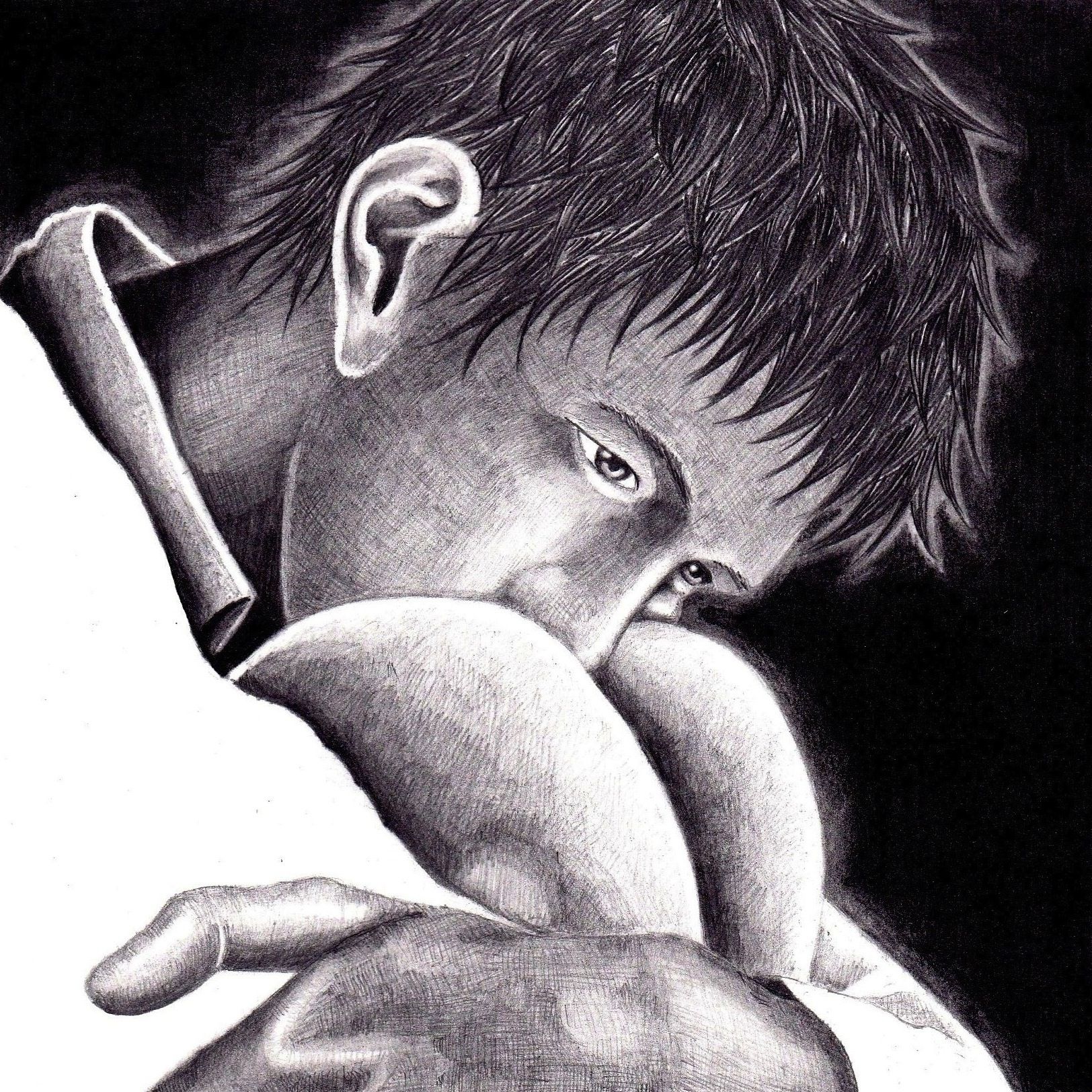 膝を抱える少年
