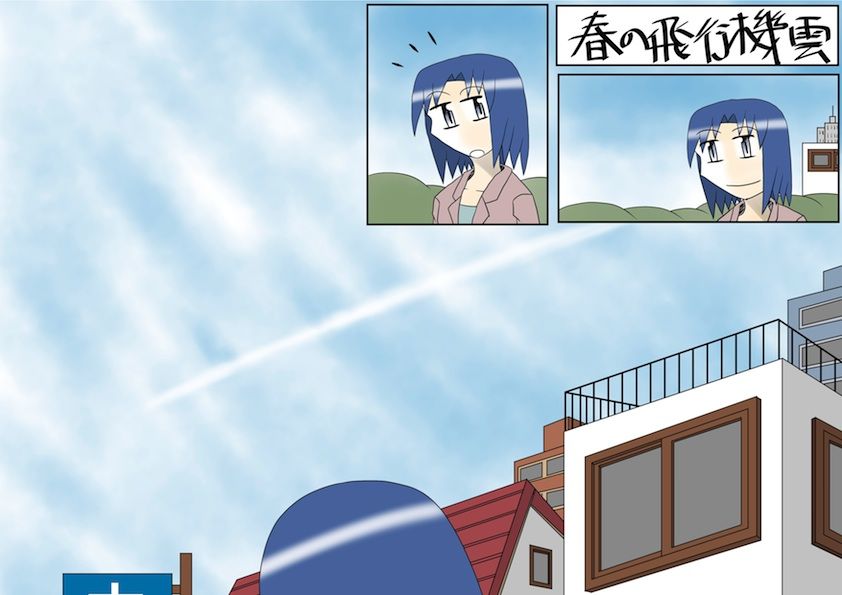 今日のスケッチ「春の飛行機雲」
