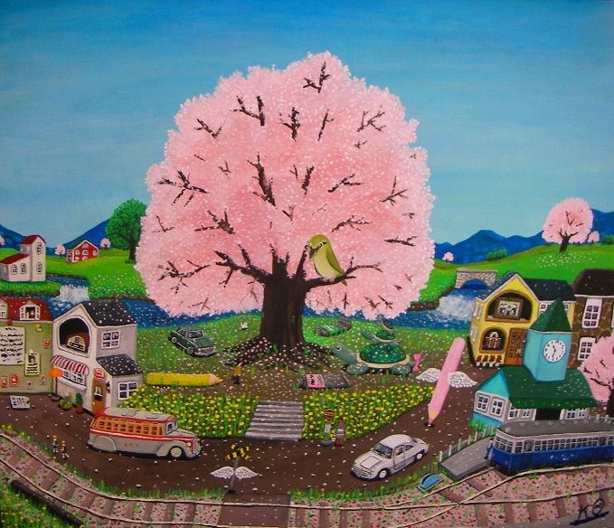 横浜のAAA GALLERYさん(http://www.artaraqasia.com/galleryAAA.html)にて4月27日より開催される「AAA企画特別展覧会「Sakura Saku」展」のために新たに描いたもので、F10(530×455)サイズのキャンバスに描いたもの。
