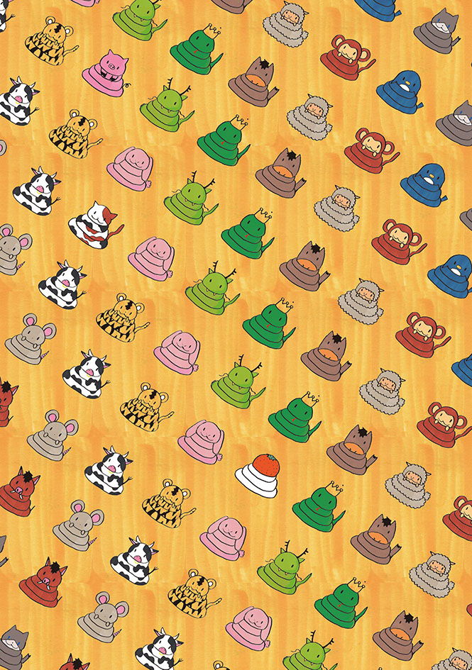 2013年の干支、へびをメインに据え、他の十二支にもとぐろをまかせました。