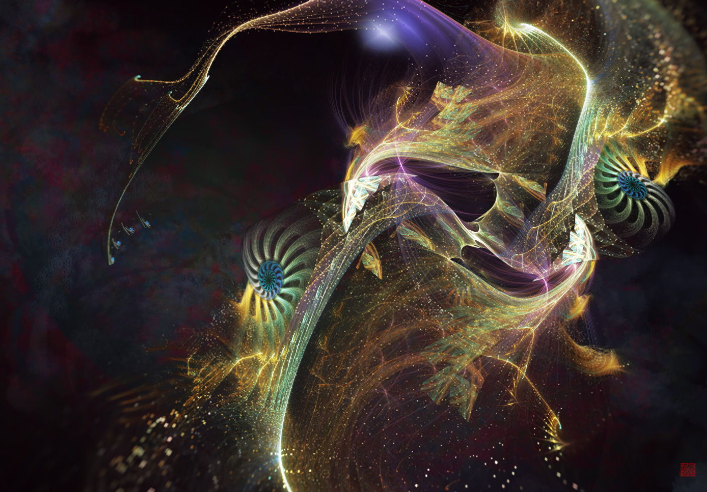 Apophysis7x PhotoshopCS 出力作品は顔料インクの上に岩絵の具と色鉛筆で描き込み、仕上げてあります。