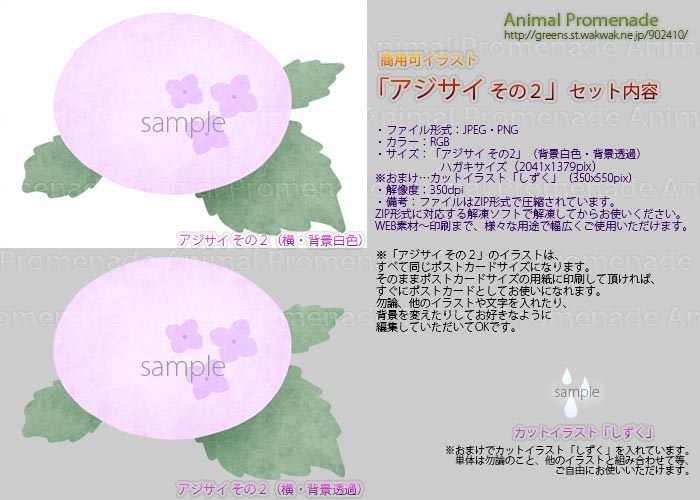梅雨の季節にピッタリな、商用可「アジサイ その2」セットです。