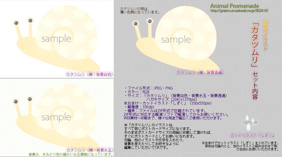 ・サイズ:「カタツムリ」(背景白色・背景水玉・背景透過)ハガキサイズ(2041x1379pix)