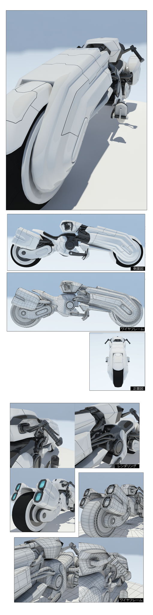 実際に存在するホンダの近未来型バイク「Honda Chopper」を再現しました。初めて見たとき、そのデザインのカッコよさに一目惚れし、衝動で制作しました。ポリゴン数は気にせずに綺麗なフォルムになるように心がけました。