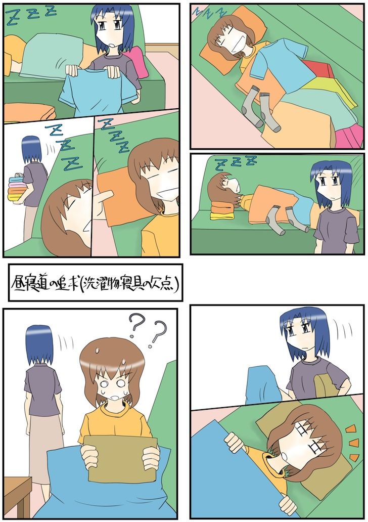 今日のスケッチ448「昼寝道の追求(洗濯物寝具の欠点)」
