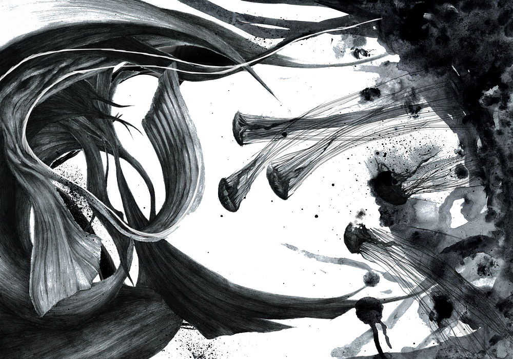 海をただよう海月、おそいくげは爆発して死んでしまいます。