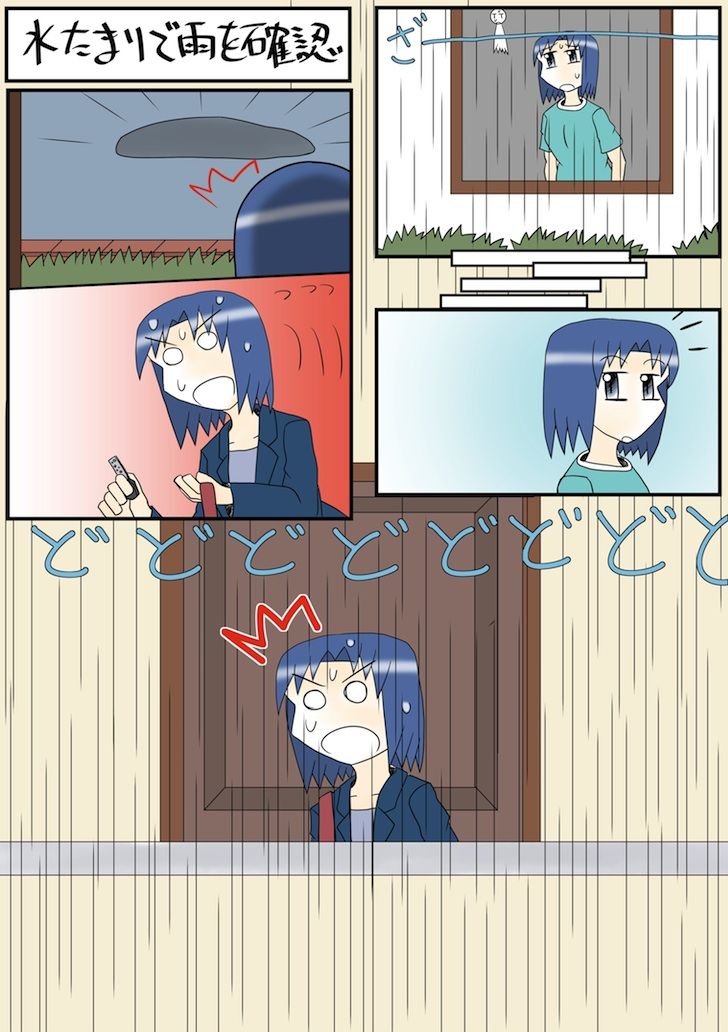 今日のスケッチ452「水たまりで雨を確認」