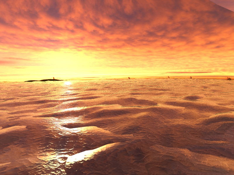 3ds Maxで作った夕方の海面の動画を切り取りました。自然な波を作るのは難しいですね。