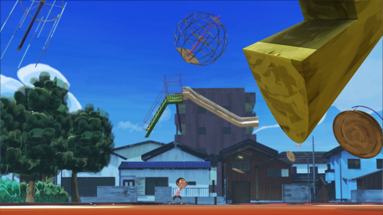 楽しそうに遊んでいた少年ですが気づいた時には公園はぐちゃぐちゃになっていました。超能力を使って元に戻そうとしたのですが、なぜか超能力がうまく使えません。しょうがないので公園から逃げようとします。そこに遊んでいた遊具が落ちてきて、少年は逃げられなくなってしまいました。