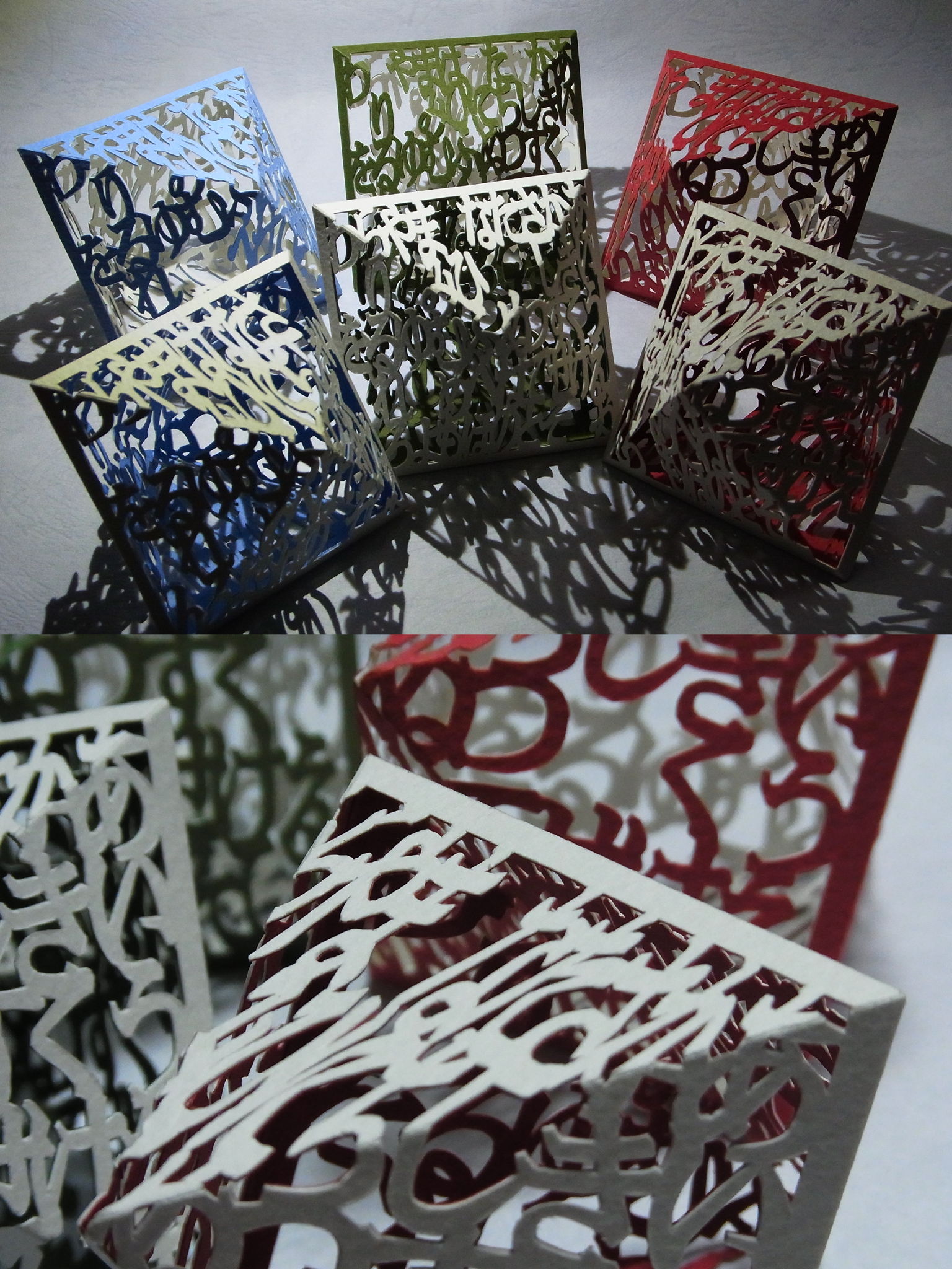 組み立てて立方体にすると、はっきりと、文字が浮かびあがってきます。