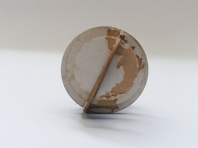 Originally I wanted to re-create the world but after much deliberation I realized I set my hat too high so I twiddled it down to creating a cut out of Japan in its exactly location or similar on the world map however again I set my hat to high so I then went about creating a day and night effect with just the outline of Japan. I tried cutting to no success, engraving was my last resort proved to be a pleasant surprise. Sourcing Black and White card I did multiple trials to finally create my ‘Retro’ Spinning Top.