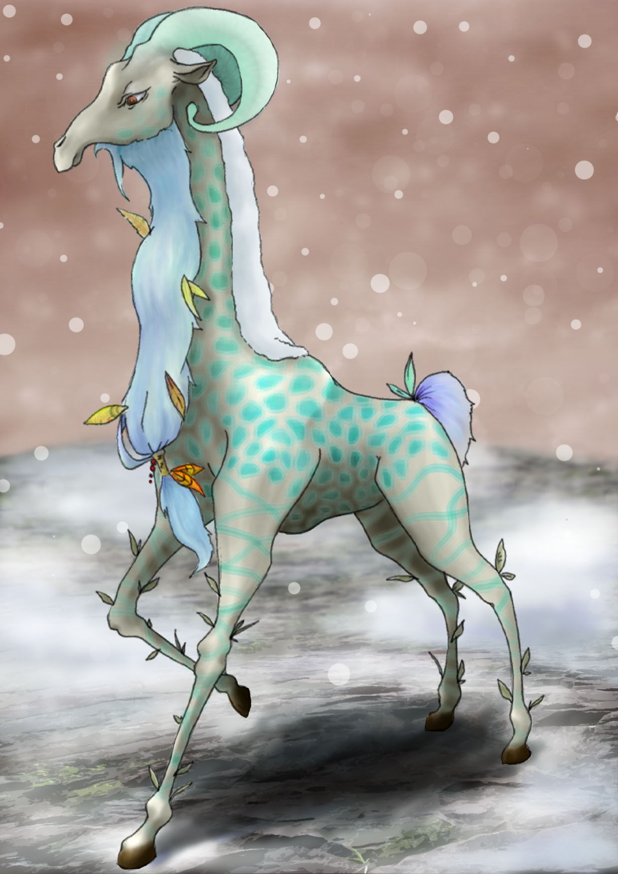 キリンの山脈で暮す姿を想像して描いたものです