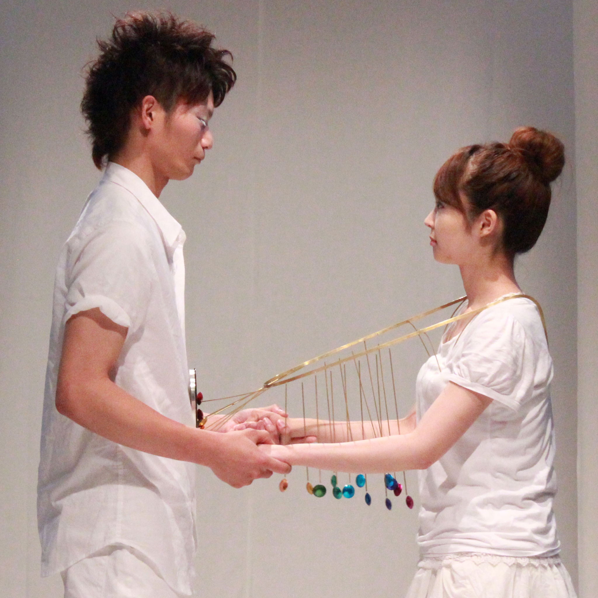 舞台の上でふたつのジュエリーがくっつくという動きを取り入れた作品