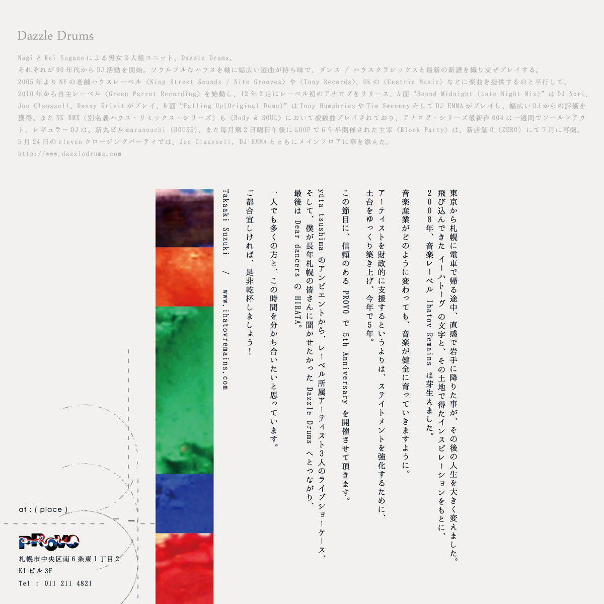 「Ihatov Remains 5th Anniversary」(09/21 @ PROVO)フライヤーデザインを担当させていただきました。