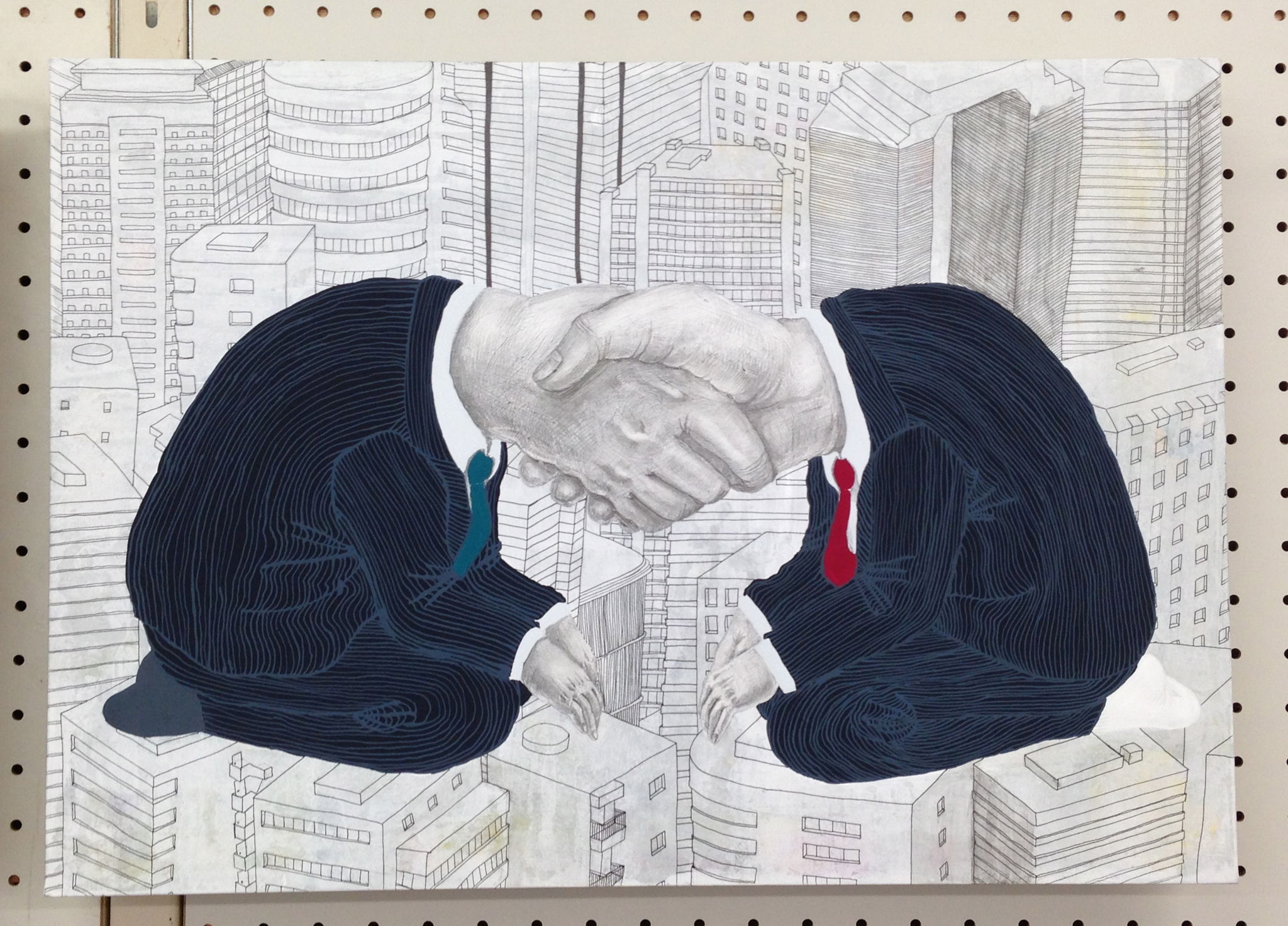 アクリルガッシュ,鉛筆,ペン