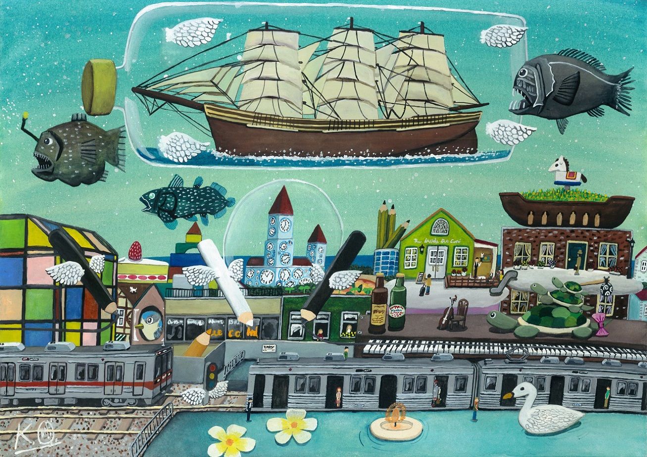 「土産話」って言葉があるけど、「(お土産として)持ち帰りたくなるような、(話をする事で)誰かと(その話を)共有したくなる"瞬間(/思い出/記憶)"ってどんなだろう?」と思って描いたもの。