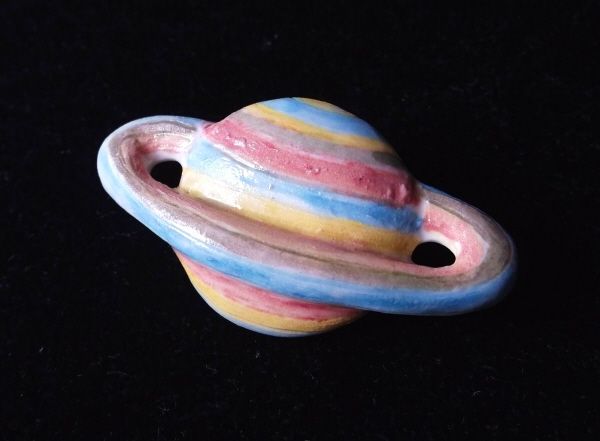 冷たい印象のある土星を、明るくカラフルに着彩し、ブローチに仕立てました。