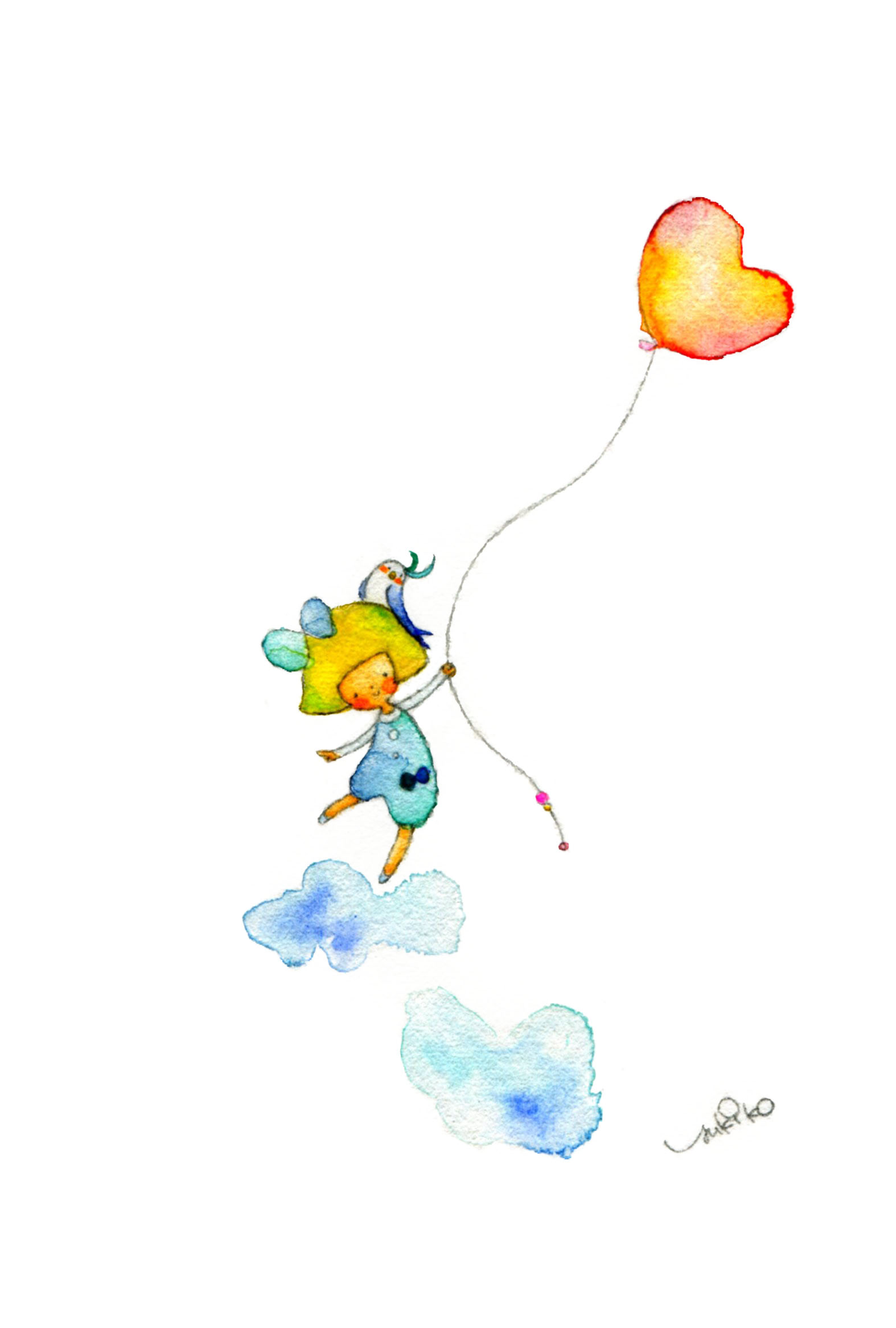 こころを軽くするのは、きっとそんなに難しいことではないんだろうなぁ。何かあっても、飛べるくらいふわふわした気持ちを、またすぐに取り戻せるようにいられたらなぁ。そう思って描きました。