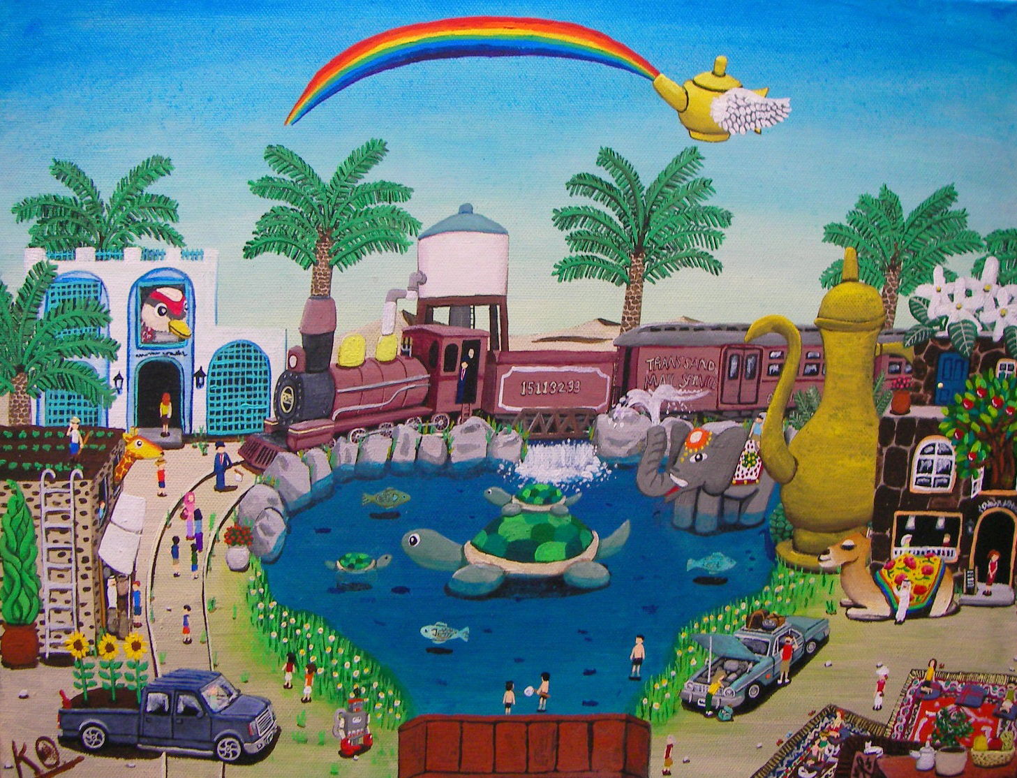 8月の27日から9月の6日までギャラリー「Art Point」さんにて開催されていたグループ展「Life2013」展に出品していた作品で、F6(410×318)のキャンバスにアクリル絵の具で描いたもの。 「動物・生物」がテーマの展示ではありますが、「オアシス」を題材に選んだのは「動物だって人間だって結局は"綺麗な水"は必要不可欠なものだし、"綺麗な水"があるからこそ皆そこに集まって来るんだよなぁ...。(だったら何故汚すの?)」と言う事が浮かんだから...と言うのがありました。