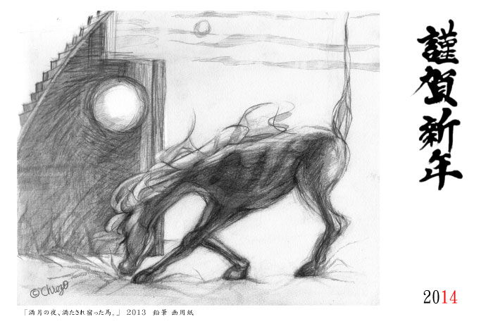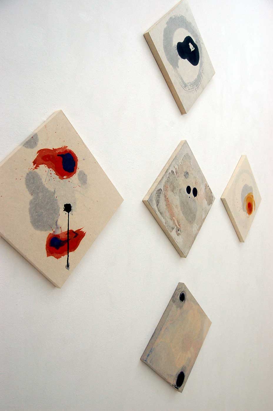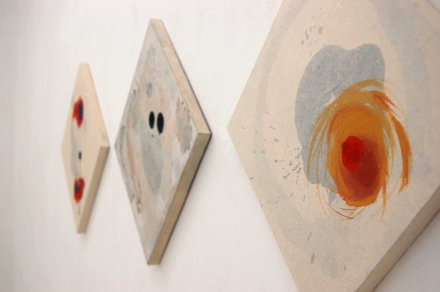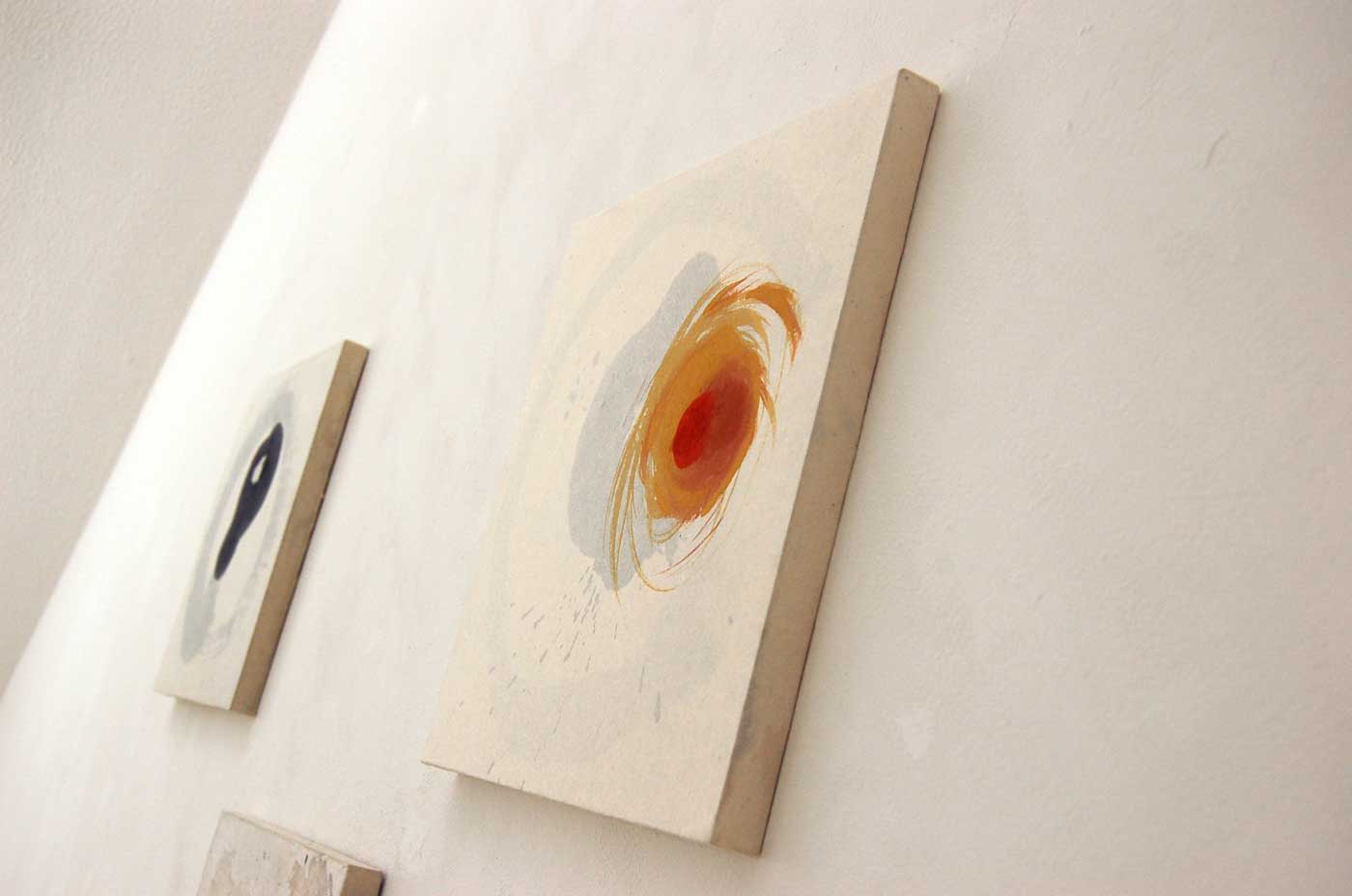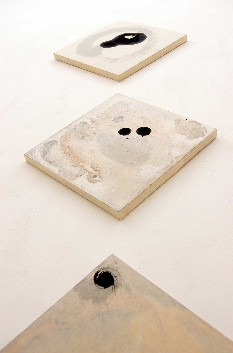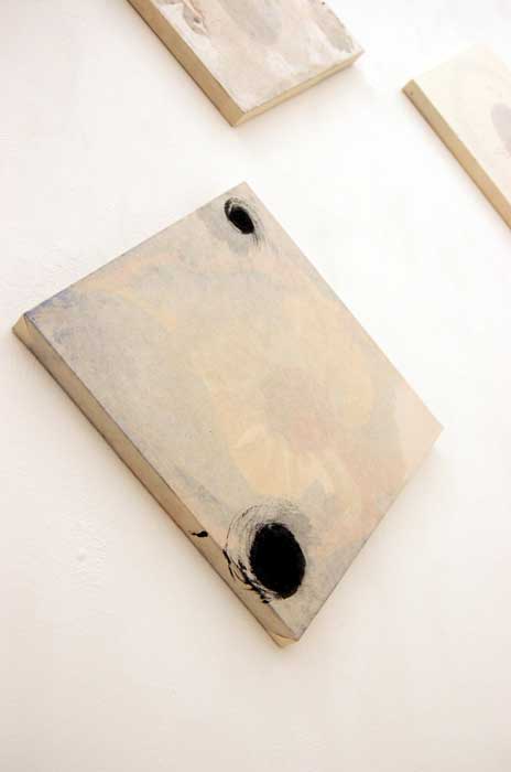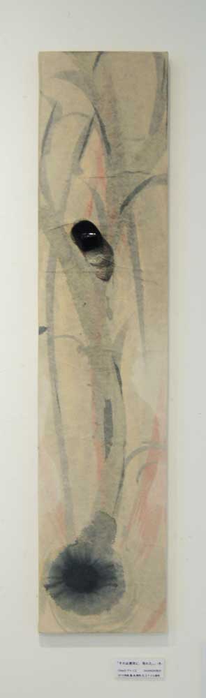 日本古来の素材である手漉き和紙、墨、膠、顔料に回帰し、何層も和紙を重ね視えることと視えないこと、表層と内部といった、私自身の新しい表現方法を模索することで、視る側へ何らかの喚起をし得るのではないかと、行った作品です。