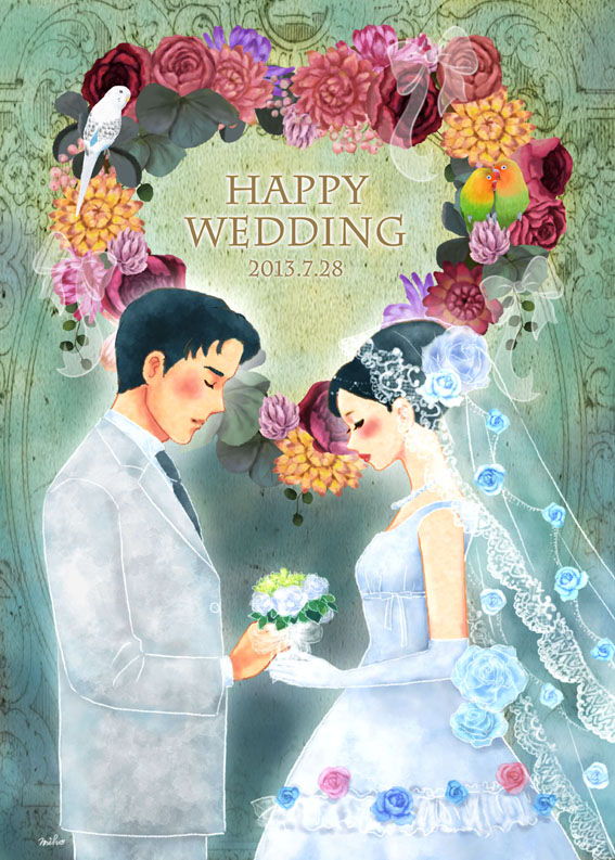 結婚式用に描かせていただいたウェルカムボードイラスト。