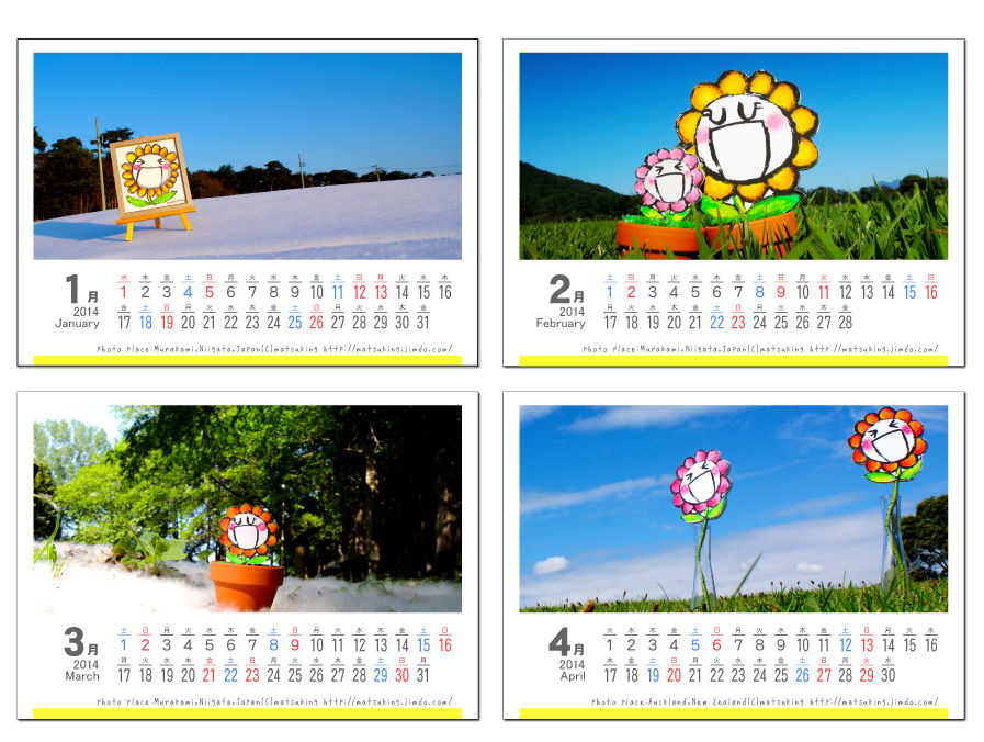 『笑顔の枯れない花になろう』をコンセプトに撮りためた写真を使って2014年のカレンダーを作りました☆