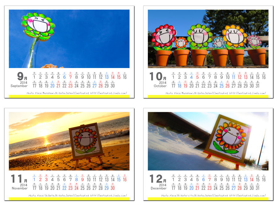 『笑顔の枯れない花になろう』をコンセプトに撮りためた写真を使って2014年のカレンダーを作りました☆