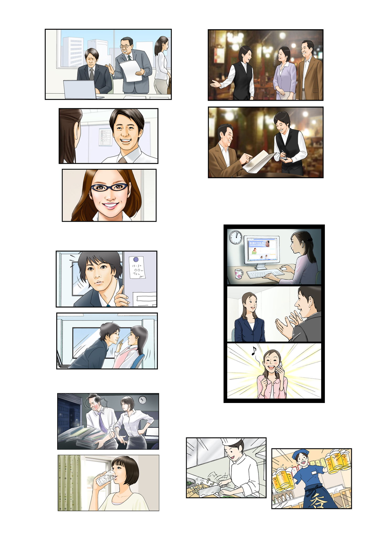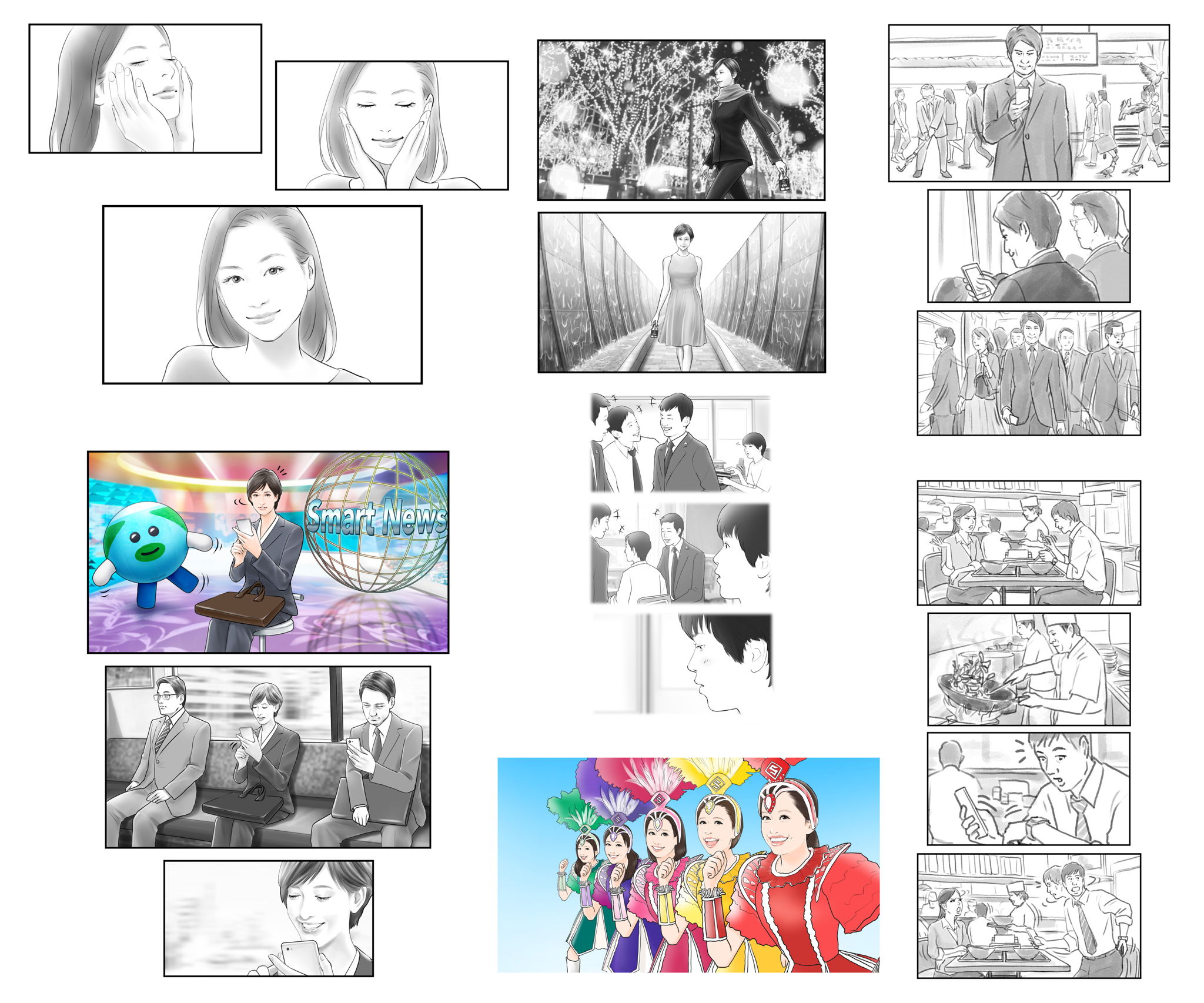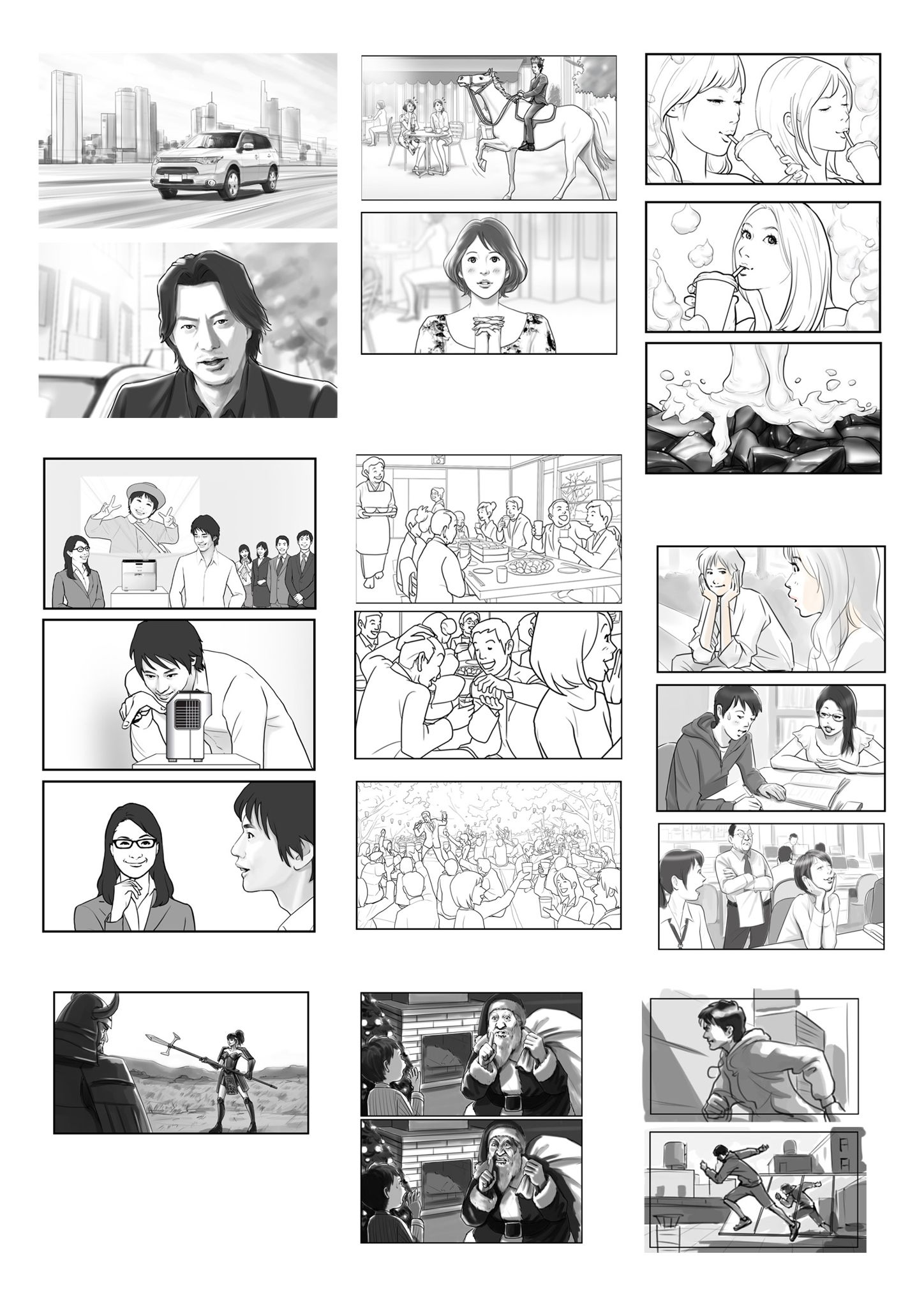 最近のCM絵コンテタッチ見本(モノクロ)