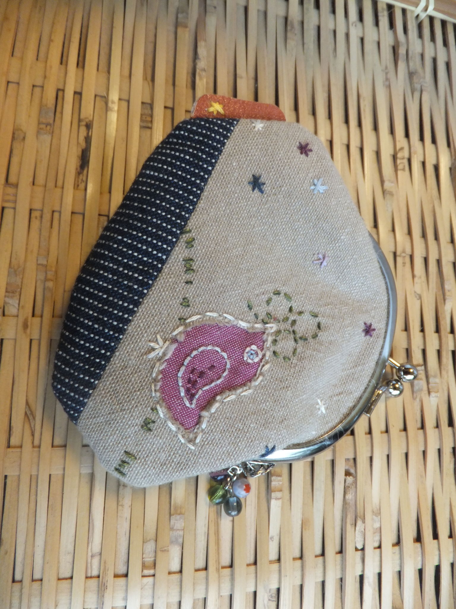 布をキャンバスに見立て、絵を描くようにちくちく刺繍しました。