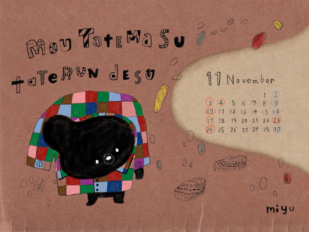 いつもありがとうございます!秋が深まってまいりましたね!まっくろくまカレンダー11月もどうぞよろしくお願いいたします。