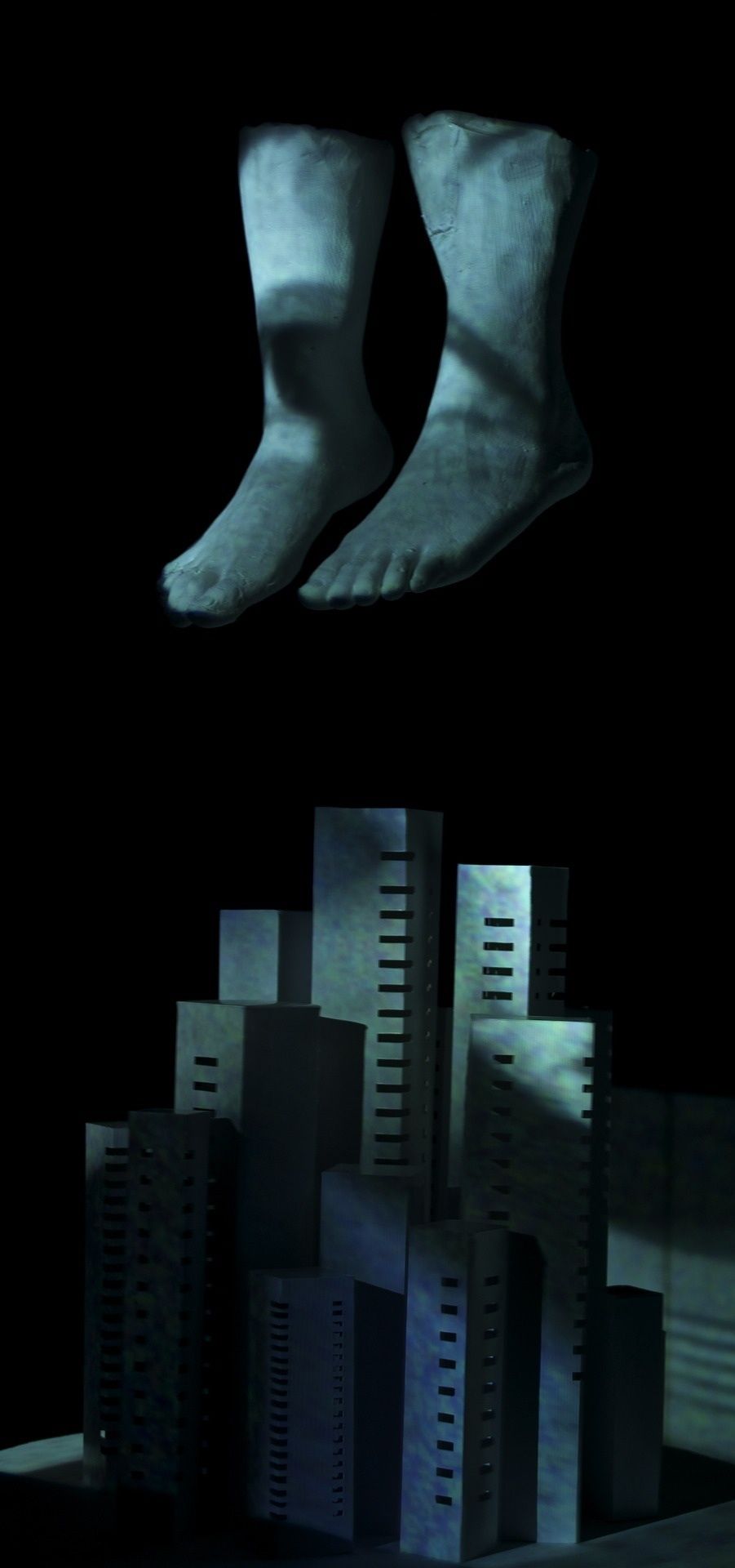 足は私の心でありビル群は現実である。
