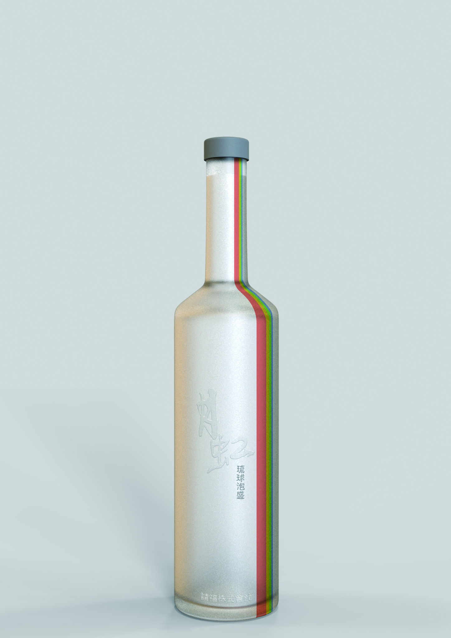 the bottle , clear but with a little mist , the long rainbow on the bottle means the aftertaste , continuable and colorful .