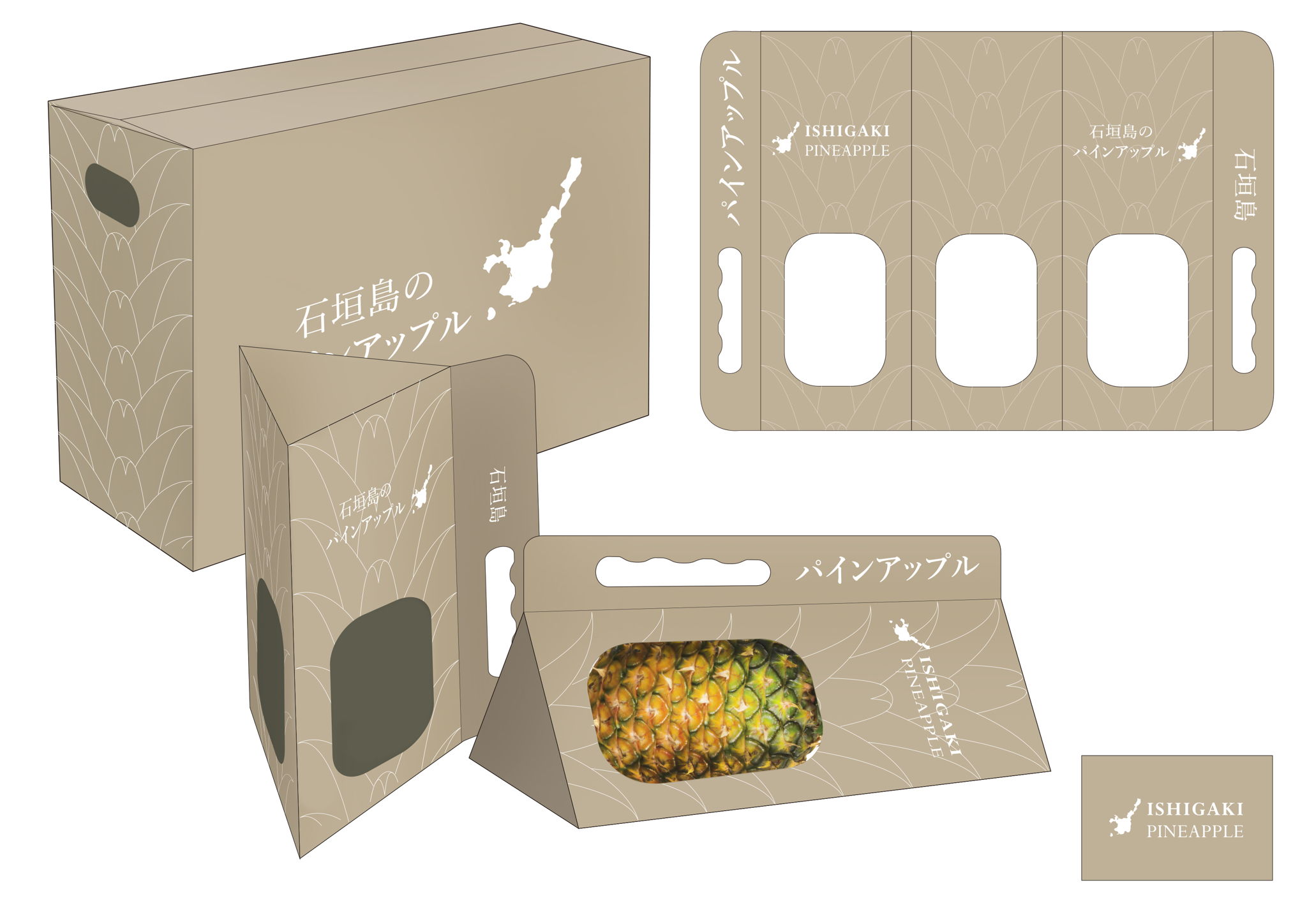 此設計以簡單的三角結構固定鳳梨,採用環保再生卡紙和單色印刷,降低包裝成本和環境負擔。其概念希望將鳳梨鮮甜的橘黃色澤直接呈現,遮蔽刺手的鳳梨葉的同時,運用葉子層疊的意象為圖樣,代表著石垣島鳳梨的傳承與蓬勃發展。