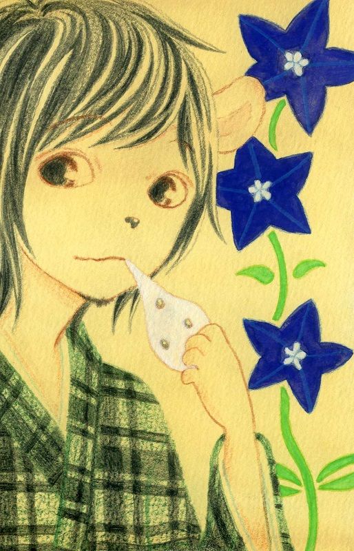 水彩絵の具と色鉛筆で描いた後、PCにて色の調整をしました。