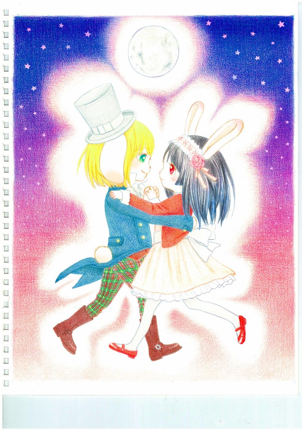 色鉛筆で描いた後、PCにて色の調整をしました。