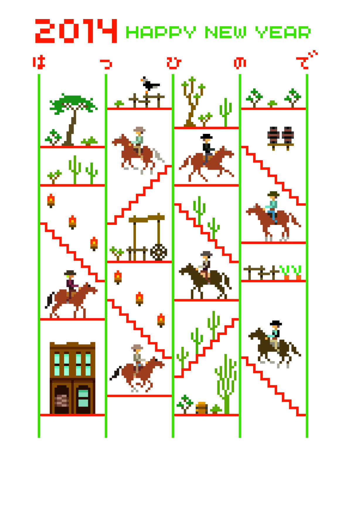 懐ゲードット絵風味の楽しいウエスタン年賀状デス。